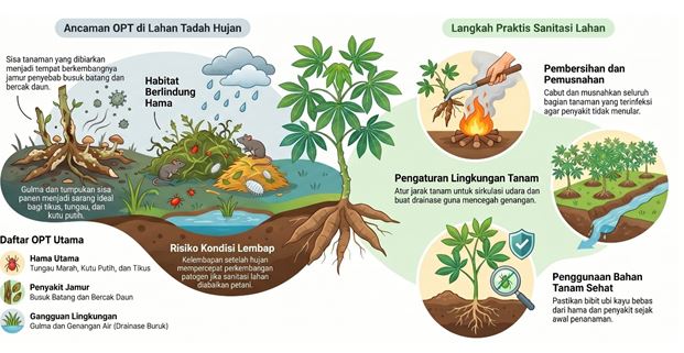 Penerapan sanitasi dalam budidaya ubi kayu di lahan