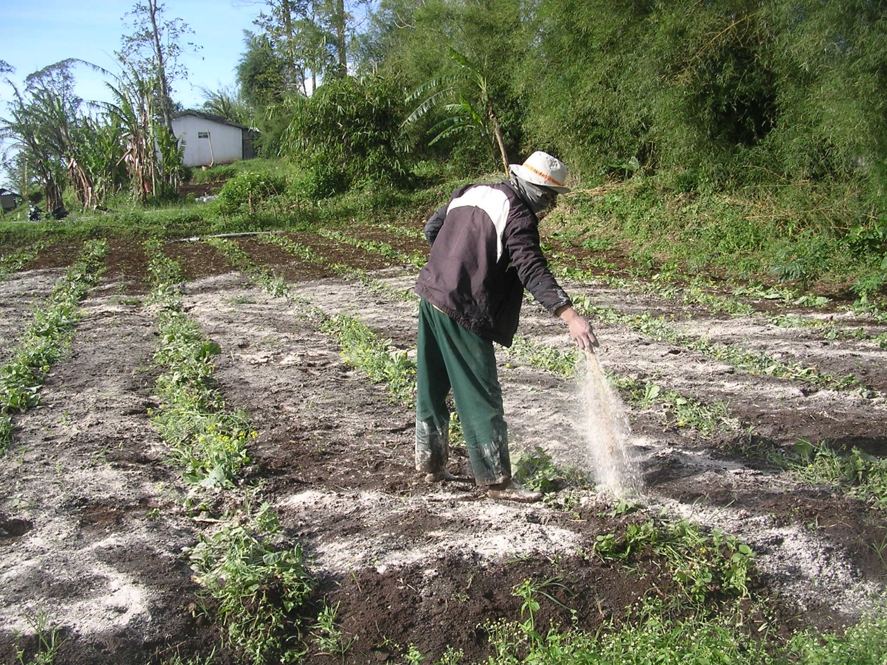 Campuran kapur dolomit dan pupuk ZA ini disebarkan secara merata dalam larikan yang sejajar di dalam barisan tanaman, di sekeliling tanaman, atau dimasukkan ke dalam lubang khusus yang dibuat di sisi kanan dan kiri tanaman.