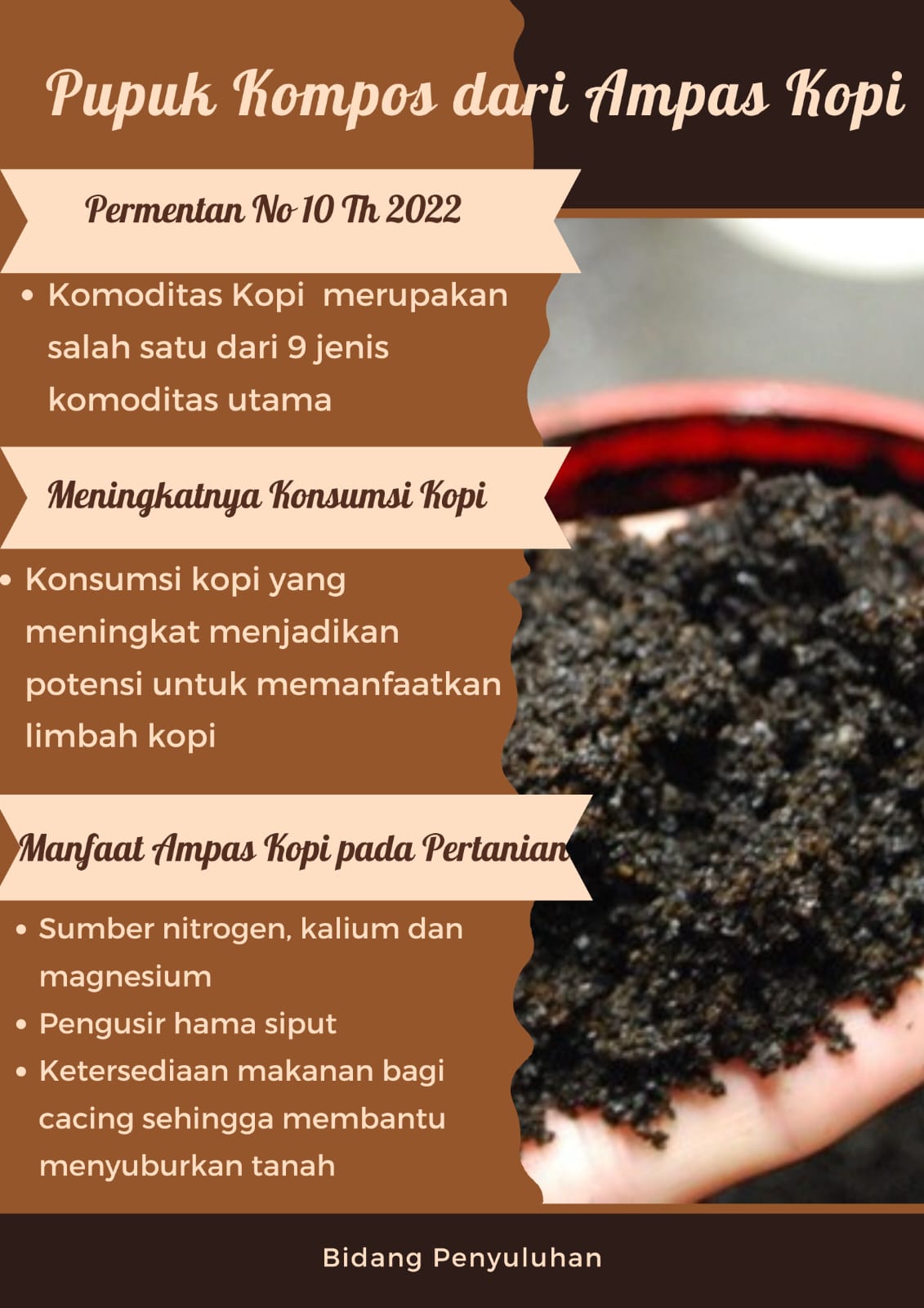 Mensiasati konsumsi kopi yang meningkat, tentunya harus mengambil potensi tersebut dalam memanfaatkan limbah / ampas kopi. Ampas kopi memiliki manfaat adalah untuk menyuburkan tanaman. Kopi sebagai sumber nitrogen, kalium, dan magnesium. Ampas kopi layak menjadi kompos karena bisa diuraikan secara organik.