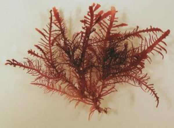 chondrococcus-hornemanniiiRumput laut jenis C. hornemannii merupakan salah satu spesies dari Rhodophyta (rumput laut merah). Thallus pipih, permukaan halus, membentuk rumpun kecil tetapi sangat rimbun saling bertumpukan. Percabangan berselang-seling teratur, merapat, tubuh berwarna merah-ungu atau pirang.