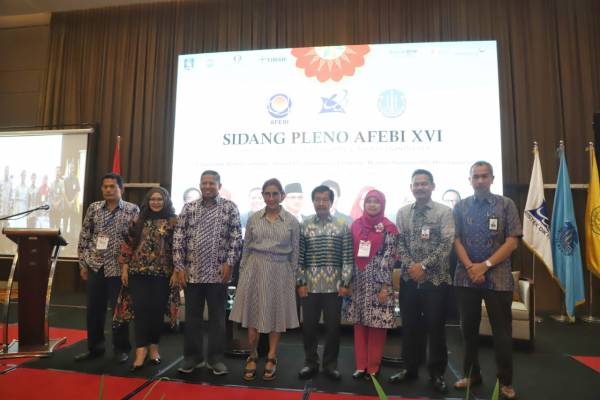 Menteri Kelautan dan Perikanan, Susi Pudjiastuti, menghadiri acara Sidang Pleno AFEBI (Asosiasi Fakultas Ekonomi dan Bisnis Indonesia) XVI di Ballroom Hotel Soll Marina Bangka, Bangka Tengah, Kepulauan Bangka Belitung, Kamis (25/4). Dalam kesempatan tersebut, ia menyampaikan keynote speech yang bertajuk “Ekowisata Bahari sebagai Solusi Pertumbuhan Ekonomi Menuju Sustainable Development”.
