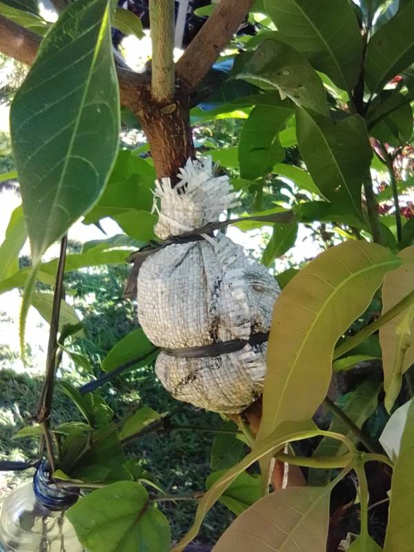 3. Di hari ke 1 atau 2 maka tanaman sudah siap untuk di cangkok , maka siapkan pelastik/serabut kelapa yang sudah saya jelaskan diatas untuk menutup/membungkus hasil guratan dibatang dibarengi dengan pengisian tanah yang sudah dicampur. Lalu ikat dengan rapi dibagian atas ,tengah dan bawah guratan. Jika menggunakan pelastik pembungkus disarankan memberikan lubang udara/ventilasi di seluruh bagian cangkokan dengan cara "mencucuk dengan paku besi atau benda runcing lainnya. Karena bagaian tersebut nnti akan menjadi tempat akar akan muncul.