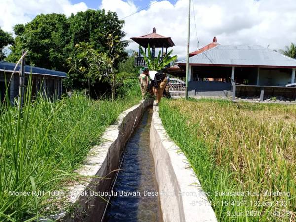 Kasi Lahan dan Irigasi Dinas Pertanian Kabupaten Buleleng Bapak Ida Putu Sandiasa, SP dan Staf Tim Teknis beserta Koordinator Kecamatan Sukasada Ibuk Ir.IGA.Maya kurnia,M,Si , PPL Wilbin, dan Kelian Subak untuk melaksanakan kegiatan Monev Pengecekan Progres Fisik Rehabilitasi Jaringan Irigasi Tersier (RJIT) di Subak Batupulu Bawah, Desa panji Anom, Kecamatan Sukasada.
