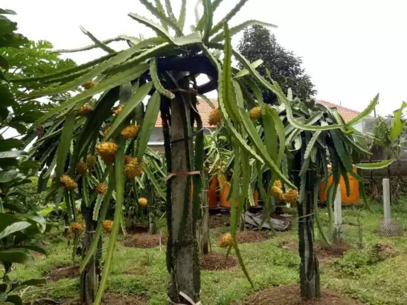 Untuk perawatannya, sambung Arjana, buah naga kuning selain rajin disiram, juga rutin disemprot ketika memasuki musim penghujan, agar menghilangkan jamur yang melekat pada batangnya.