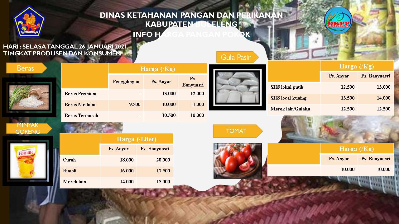 Harga Pangan Pokok Tingkat Produsen dan Konsumen Tanggal 26 Januari 2021 Slide 1