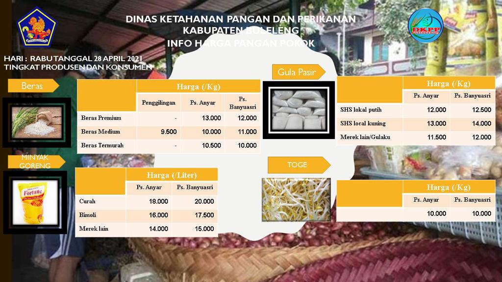 Harga Pangan Pokok Tingkat Produsen dan Konsumen Tanggal 28 April 2021 Slide 1