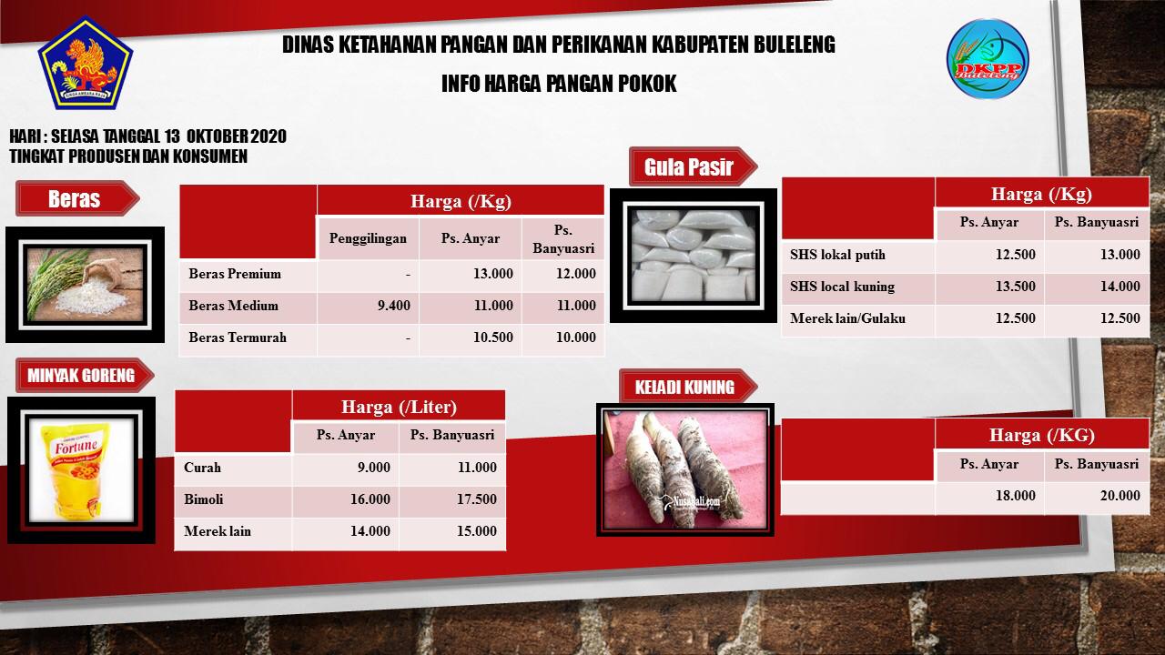 Harga Pangan Pokok Tingkat Produsen dan Konsumen Tanggal 13 Oktober 2020 Slide 1