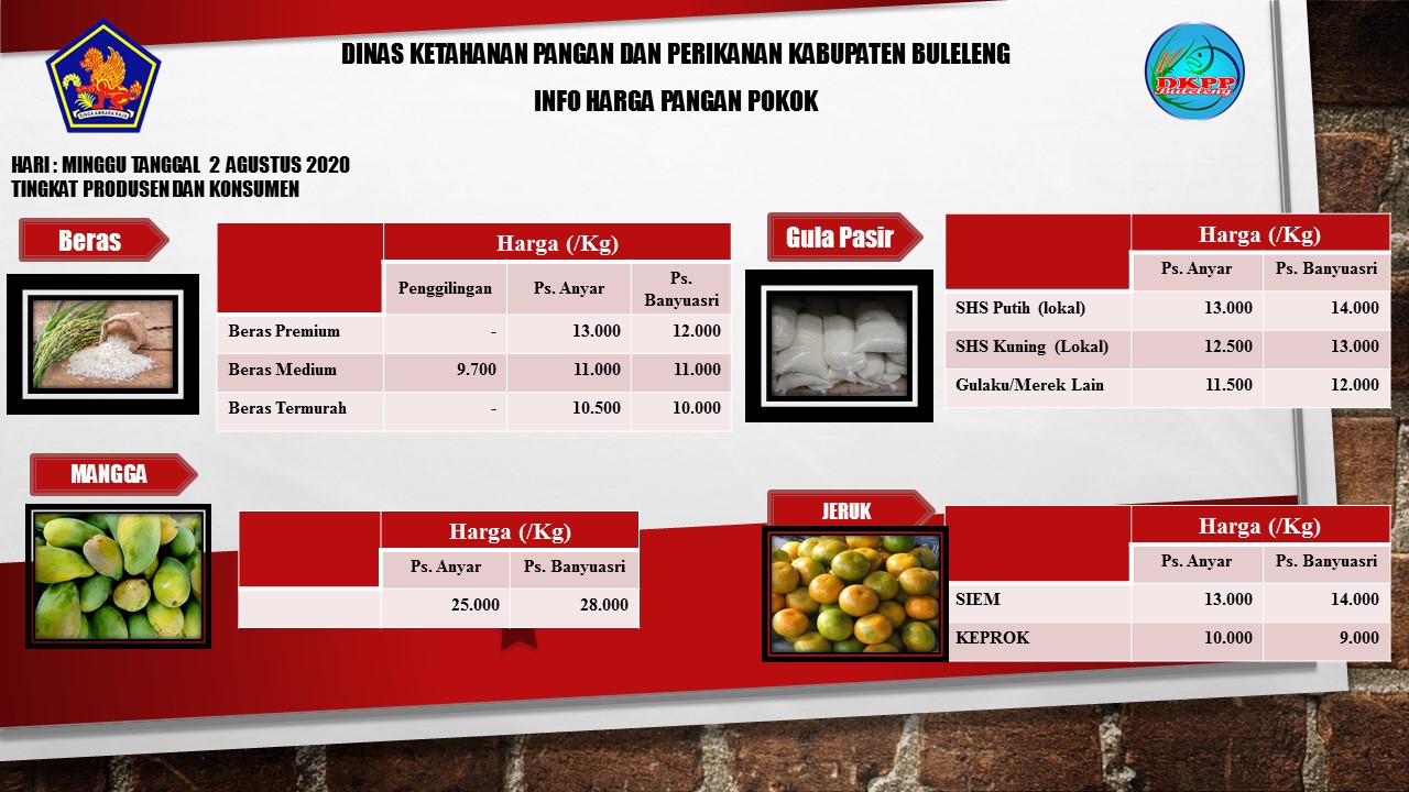 Harga Pangan Pokok Tingkat Produsen dan Konsumen Tanggal 2 Agustus 2020