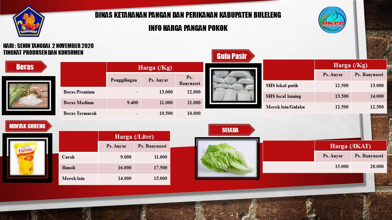 Harga Pangan Pokok Tingkat Produsen dan Konsumen Tanggal 2 Nopember 2020 Slide 1