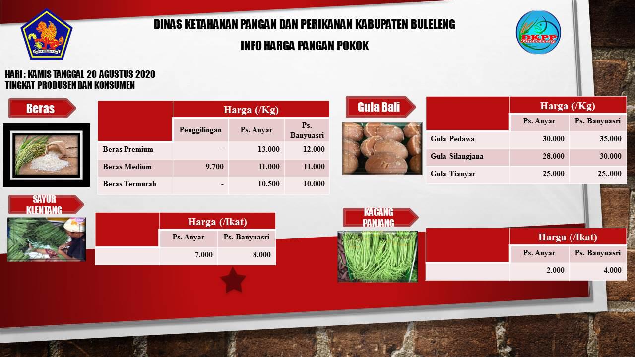 Harga Pangan Pokok Tingkat Produsen dan Konsumen Tanggal 20 Agustus 2020 Slide 1