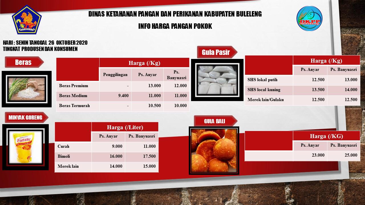 Harga Pangan Pokok Tingkat Produsen dan Konsumen Tanggal 26 Oktober 2020 Slide 1