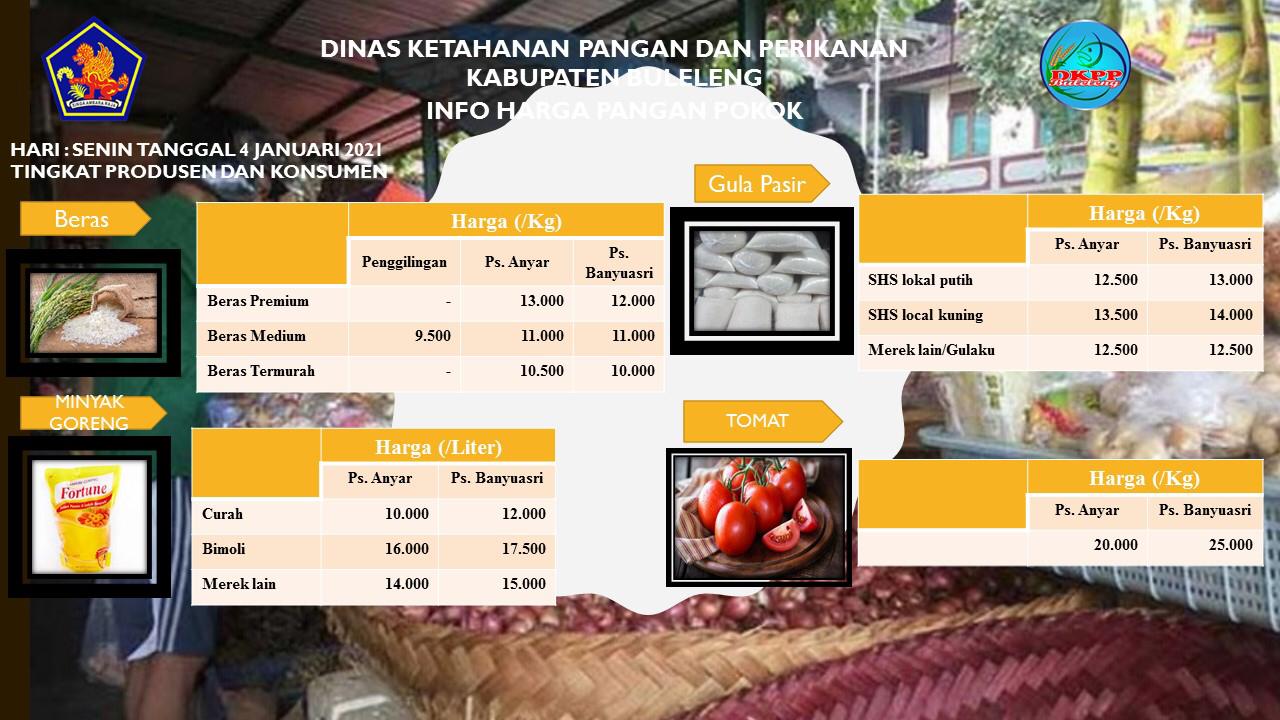 Harga Pangan Pokok Tingkat Produsen dan Konsumen Tanggal 4 Januari 2021 Slide 1
