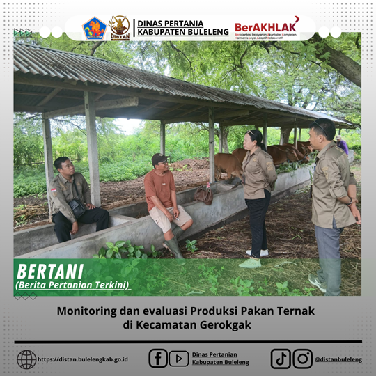 Pada hari ini, Rabu, 21 Januari 2026, telah dilaksanakan kegiatan monitoring dan evaluasi produksi pakan ternak yang bertempat di Kecamatan Gerokgak oleh Pengawas USPET dan Kesmavet, Pengawas Bibit Ternak beserta Penata Layanan Oprasional Bidang Peternakan dan Kesehatan Hewan Kegiatan ini bertujuan untuk memastikan efektivitas program bantuan di sektor peternakan serta meningkatkan produktivitas kelompok ternak penerima bantuan.