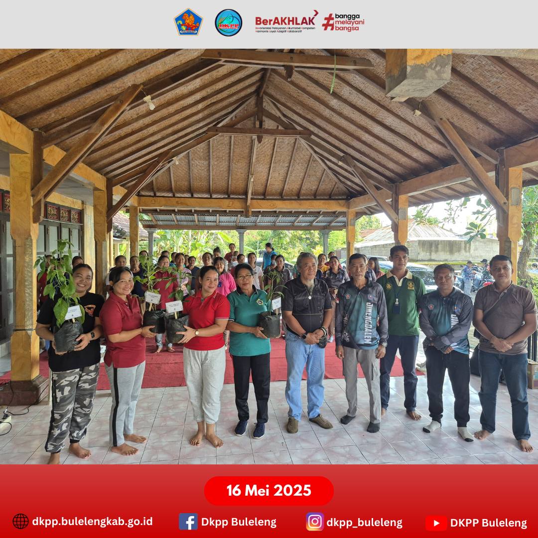 Jumat, 16 Mei 2025 - Dinas Ketahanan Pangan dan Perikanan (DKPP) Kabupaten Buleleng melalui Bidang Ketersediaan dan Kerawanan Pangan Sosialisasi Manajemen Tanaman dan Penyerahan Tanaman dan beberapa sarana penunjang kepada para penerima manfaat di Desa Jinengdalem, Kecamatan Buleleng. Kegiatan ini dihadiri langsung oleh Bapak Kabid KKP beserta staf terkait, Bapak Perbekel Desa Jinengdalem beserta aparat desa setempat, dan Koordinator BPP Kecamatan Buleleng beserta staf.