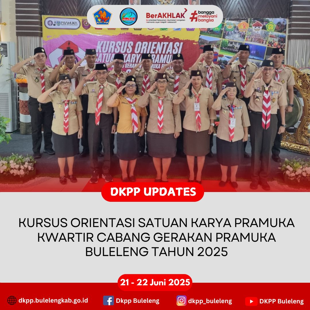 Dinas Ketahanan Pangan dan Perikanan (DKPP) Kabupaten Buleleng sebagai Pangkalan Satuan Karya Pramuka (Saka) Bahari Kwartir Cabang (Kwarcab) Gerakan Pramuka Buleleng mengikuti serangkaian Kursus Orientasi Saka Kwarcab Gerakan Pramuka Buleleng Tahun 2025 bertempat di SMKN Bali Mandara, Buleleng yang berlangsung pada tanggal 21 - 22 Juni 2025. Tema Kursus Orientasi Saka pada tahun ini yaitu "Tegak Berdiri Dalam Persatuan, Tulus Mengabdi Tanpa Batas" dengan diikuti peserta dari pimpinan dan instruktur di masing - masing Saka pada instansi Pemkab Buleleng.