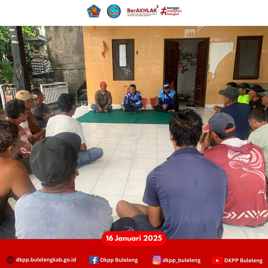 Kepala Dinas Ketahanan Pangan dan Perikanan (DKPP) Kabupaten Buleleng I Gede Putra Aryana, S.Sos., MAP. bersama Fungsional Perencana melakukan peninjauan terhadap laporan mengenai sarana/prasarana penangkapan ikan milik Nelayan KUB (Kelompok Usaha Bersama) Manik Segara, Desa Pengastulan, Kecamatan Seririt khususnya alat Jaring Insang yang mengalami kerusakan. Melalui kegiatan ini, DKPP Buleleng juga mendampingi dan berdiskusi dengan anggota Nelayan untuk mendapatkan solusi atau jalan tengah terkait permasalahan tersebut, agar mencapai kesepakatan bersama.