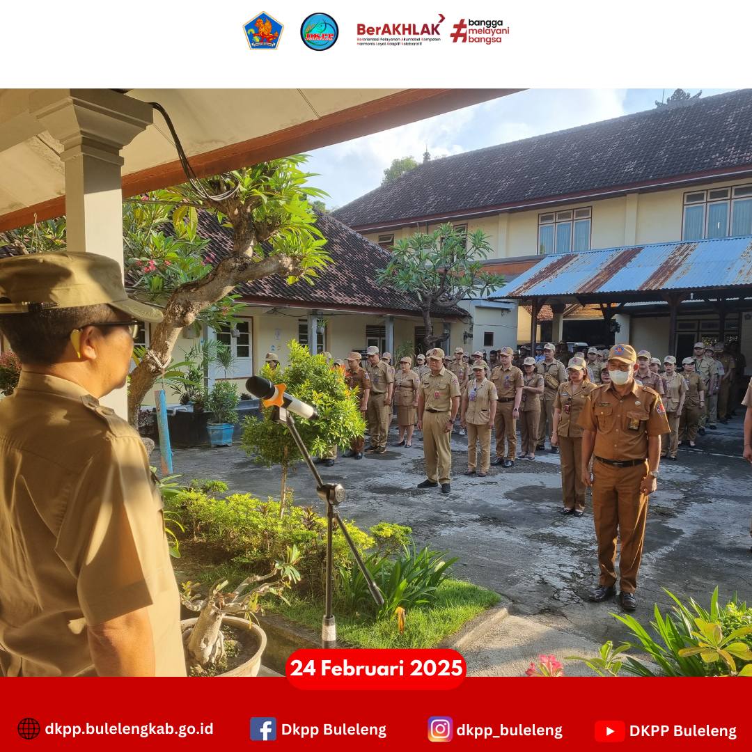 Senin, 24 Februari 2025 - Apel Pagi Kedisplinan Dinas Ketahanan Pangan dan Perikanan (DKPP) Kabupaten Buleleng yang dipimpin Kepala Dinas (I Gede Putra Aryana, S.Sos., M.A.P.) dan diikuti seluruh jajaran. Pada apel ini, Kadis DKPP Buleleng menyampaikan terkait pelaksanaan pemantauan ketersediaan dan harga bahan pangan pokok oleh Tim Satgas Ketahanan Pangan Buleleng, dan akan dilaksanakannya operasi pasar dalam rangka menjelang Hari Besar Keagamaan Nasional (HBKN) 2025.