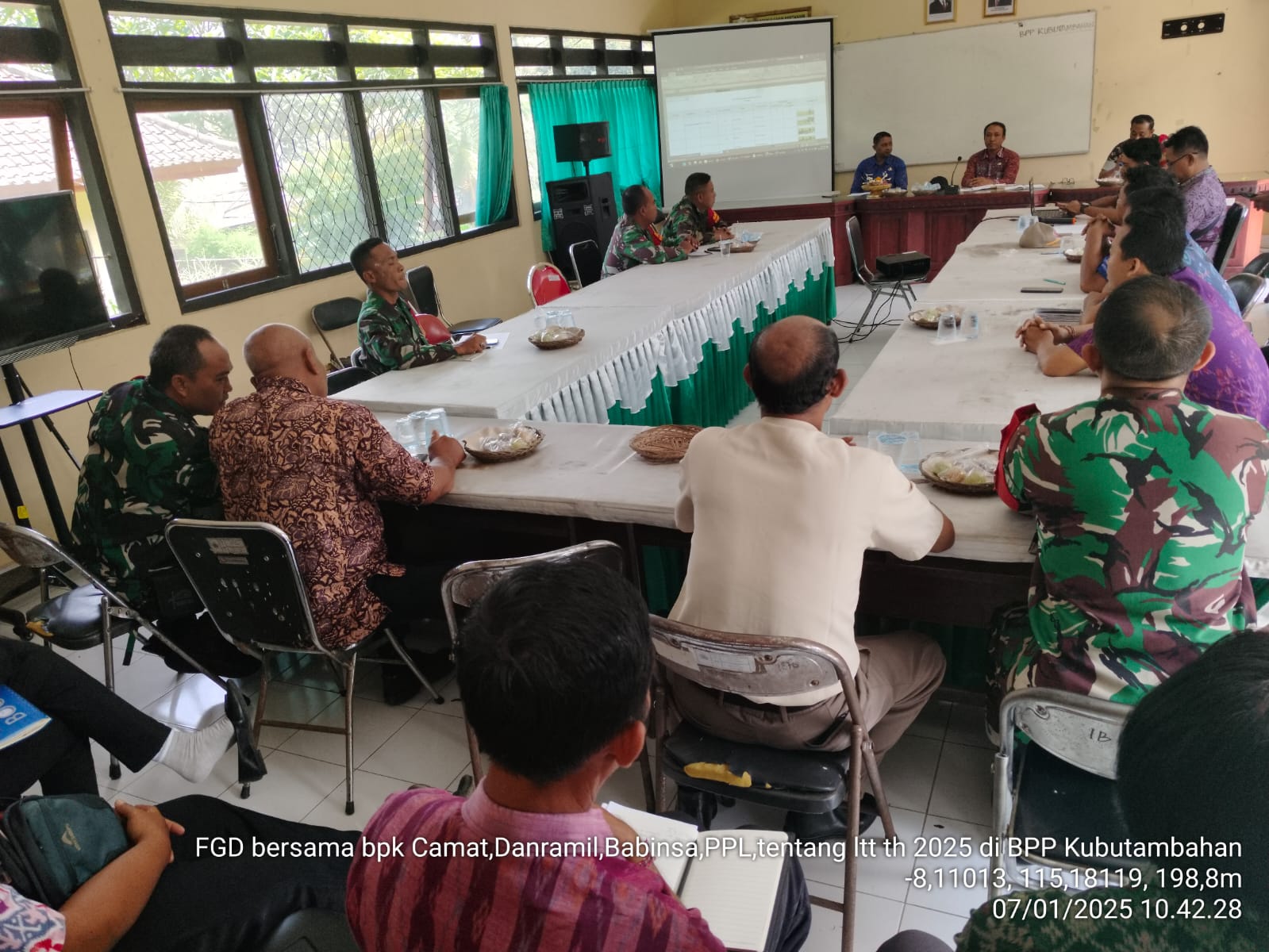Pada hari ini Selasa, 7 Januari 2025 dilaksanakan kegiatan rapat koordinasi BPP Kubutambahan Dengan Koramil Kecamatan Kubutambahan terkait pendataan LTT Padi Tahun 2025 yang dilaksanakan di BPP Kubutambahan. Pertemuan ini dihadiri oleh Camat Kubutambahan, Danramil , Babinsa sekecamatan Kubutambahan Koordinator BPP Kubutambahan, PPL & Petugas Data Kecamatan Kubutambahan.