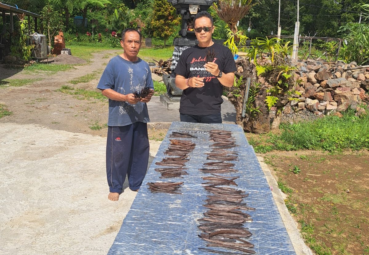 Made Ada Swastra merupakan salah satu petani di Subak Abian Tri Karya yang membudidayakan tanaman vanili. Penanaman vanili dilakukan dengan sistem tumpang sari dengan tanaman cengkeh. Saat ini petani tersebut telah memanen buah vanili dan sedang dilakukan penanganan pasca panen secara mandiri. Adapun proses penanganan pasca panen yang dilakukan yaitu setelah dipetik buah vanili dicuci kemudian disortir berdasarkan ukuran, bentuk, tingkat kemasakan dan penyingkiran buah yang cacat. Selanjutnya dilakukan tahap pelayuan untuk menghentikan pertumbuhan vegetatif dan mendorong aktivitas enzim pembentuk vanillin dan aroma, kemudian dilakukan pemeraman. Pengeringan vanili dapat dilakukan dengan cara pengeringan dengan sinar matahari langsung atau pengeringan dalam oven. Setelah vanili kering dan diangin-anginkan dilakukan proses pemantapan aroma, sortasi menurut standar mutu dan pengemasan menggunakan dus karton atau kaleng yang dilapisi kertas minyak atau plastik kemudian ditutup rapat.