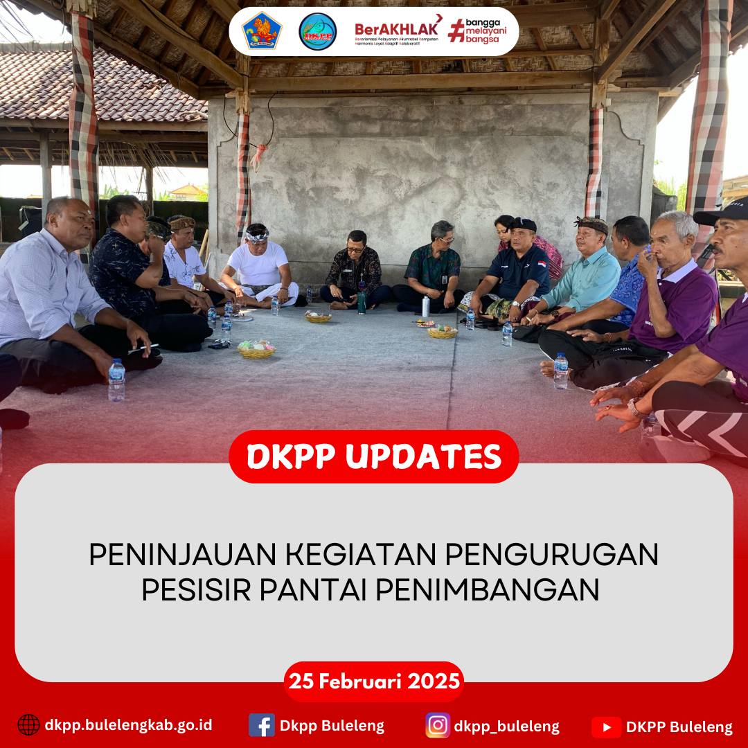 Selasa, 25 Februari 2025 - Kepala Dinas Ketahanan Pangan dan Perikanan (DKPP) Kabupaten Buleleng I Gede Putra Aryana, S.Sos., MAP bersama jajaran terkait melakukan peninjauan kegiatan pengurugan pesisir Pantai Penimbangan, Desa Baktiseraga yang di laksanakan oleh organisasi masyarakat yang di donaturi salah satu pengusaha sukses di Buleleng.