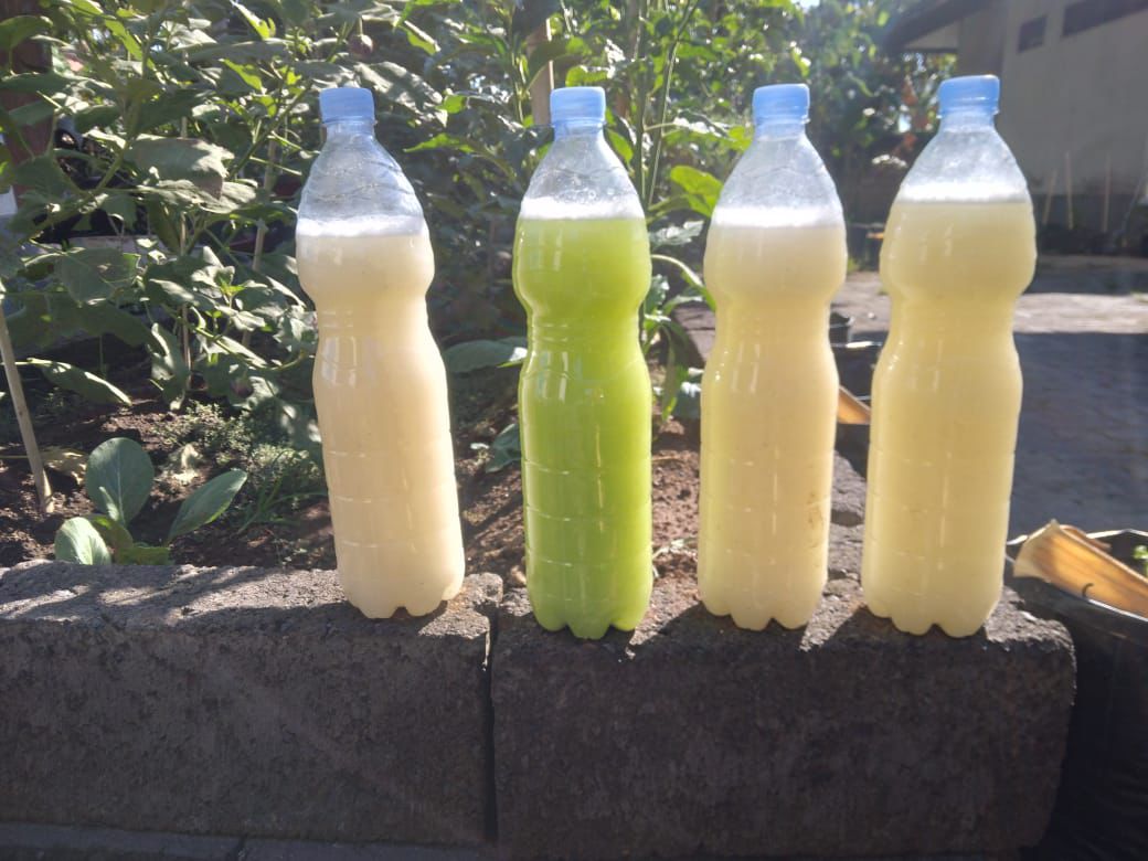 3. Selanjutnya ditambahkan biang PSB 1-2 tutup botol lalu dikocok dan dijemur dibawah terik matahari selama 2-3 minggu.