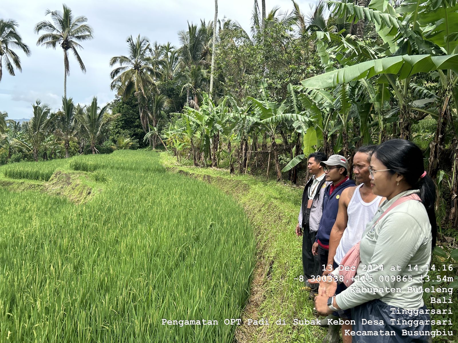 Jumat, 13 Desember 2024 dilaksanakan kegiatan pengamatan OPT Padi di Subak Kebon dan Subak Tinggarsari Desa Tinggarsari Kecamatan Busungbiu terkait Verval Permohonan Pestisida Kimia. Kegiatan ini dilaksanakan bersama POPT Kecamatan Busungbiu. Adapun hasil kegiatan dalam Pengamatan OPT Padi di Subak Kebon dan Tinggarsari Desa Tinggarsari terkait Verval Permohonan Pestisida Kimia.