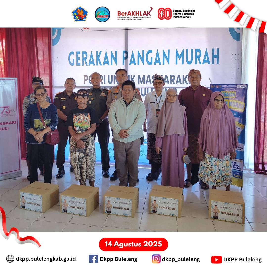 Kamis, 14 Agustus 2025 - Kepala Dinas Ketahanan Pangan dan Perikanan Kabupaten Buleleng I Gede Putra Aryana, S.Sos., MAP. yang dalam hal ini mewakili Bupati Buleleng menghadiri kegiatan Zoom Meeting Kick Off Launching Gerakan Pangan Murah (GPM) secara serentak tingkat Nasional, bertempat di Wantilan Ex. Pelabuhan Buleleng.