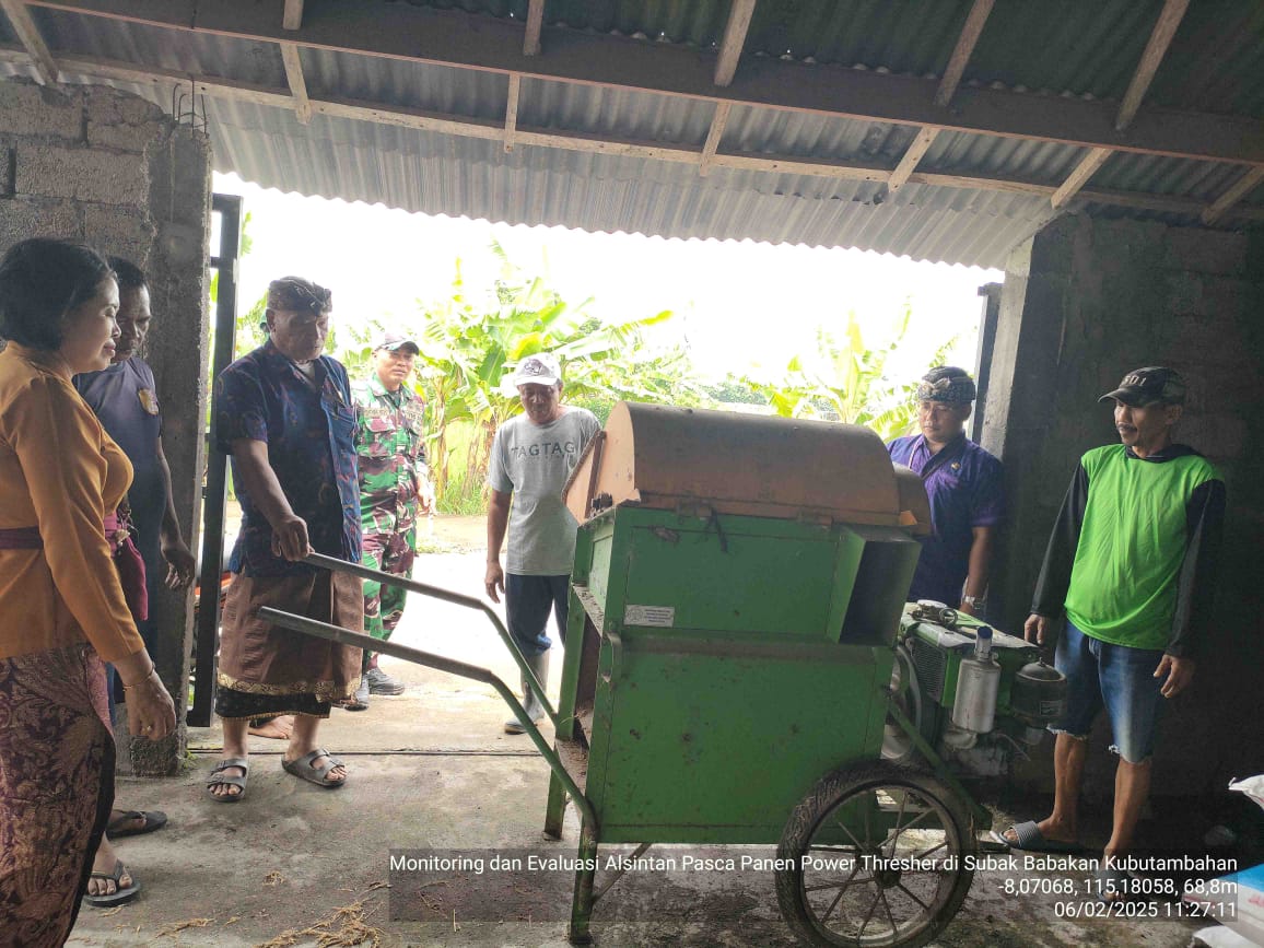 Kamis, 6 Februari 2025 Pengawas Mutu Hasil Pertanian Tanaman Pangan didampingi Penyuluh Pertanian wilayah binaan Desa Kubutambahan melakukan kegiatan monitoring dan evaluasi alsintan pasca panen power threser di Subak Babakan,Desa Kubutambahan, Kec. Kubutambahan.