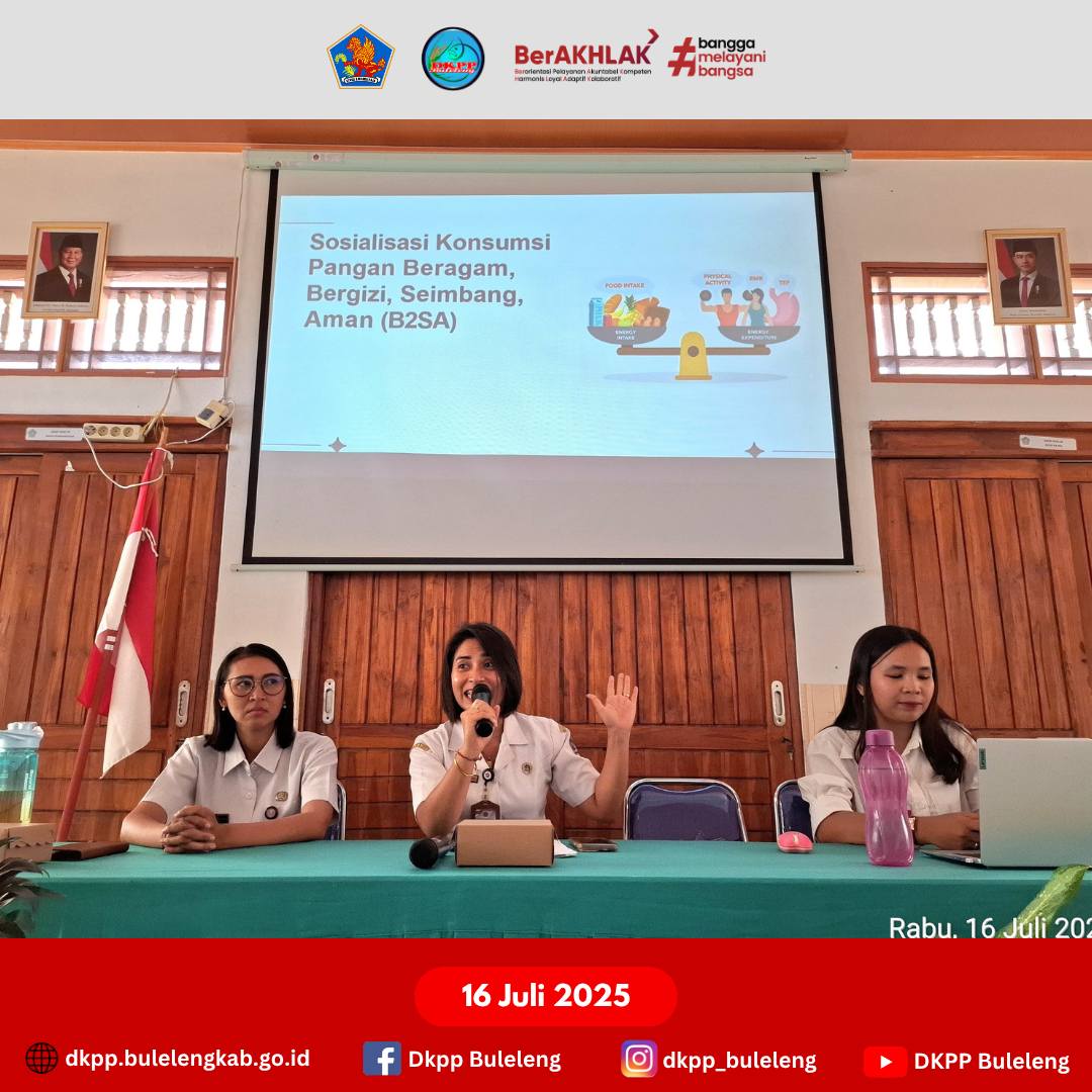 Rabu, 16 Juli 2025 - Dinas Ketahanan Pangan dan Perikanan (DKPP) Kabupaten Buleleng melalui Bidang Penganekaragaman Konsumsi dan Keamanan Pangan menggelar Sosialisasi Pola Konsumsi Pangan Beragam, Bergizi, Seimbang, dan Aman (B2SA) kepada kader posyandu desa se-Kecamatan Tejakula. Kegiatan dihadiri Analis Ketahanan Pangan DKPP Buleleng (Luh Pastiniasih, S. TP., M. Si.) bersama jajaran, Kasi Sosial Kecamatan Tejakula dan 30 orang kader posyandu perwakilan desa.