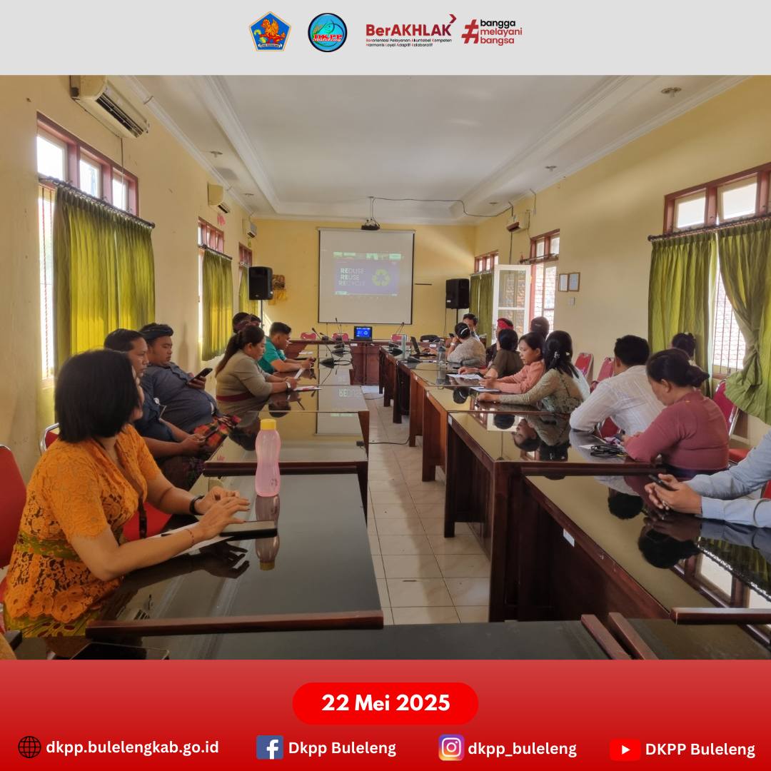 Kamis, 22 Mei 2025 - Dinas Ketahanan Pangan dan Perikanan (DKPP) Kabupaten Buleleng mengikuti Zoom Meeting Sosialisasi Percepatan Pembatasan Penggunaan Plastik Sekali Pakai dan Pengelolaan Sampah Berbasis Sumber serta Gerakan Bali Bersih Sampah yang diselenggarakan Pemprov Bali. Zoom Meeting dibuka Sekda Provinsi Bali Dewa Made Indra, dengan melibatkan Narasumber Duta Pengelolaan Sampah Berbasis Sumber (Ni Putu Putri Suastini Koster) dan Inspektur Daerah Provinsi Bali (I Wayan Sugiada).