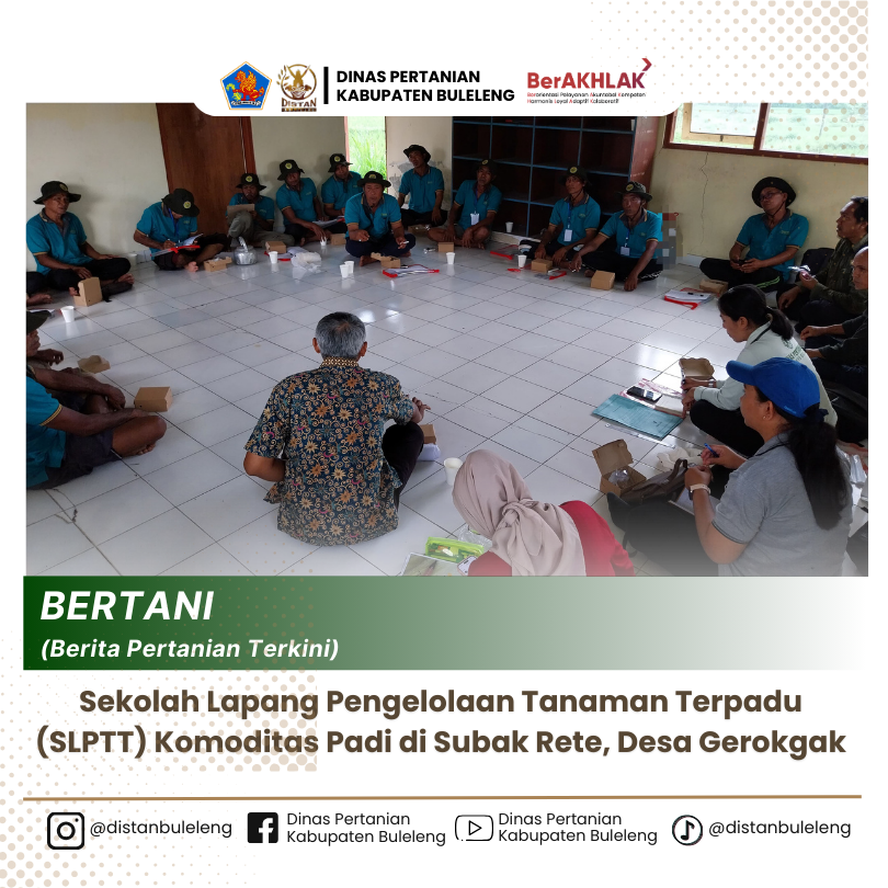 Sekolah Lapang Pengelolaan Tanaman Terpadu (SL-PTT) Komoditas Padi dilakasanakan hari ini, Kamis, 10 April 2025 di Subak Rete, Desa Gerokgak oleh pegawai BPP Gerokgak, Bidang Penyuluhan serta petani krama Subak Rete.