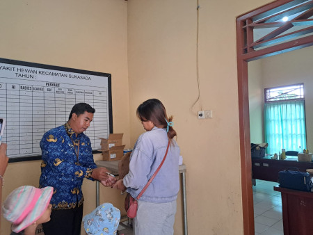 Senin, 17 Maret 2025 telah dilakukan pelayanan kesehatan hewan berupa vaksinasi rabies pada anjing dan kucing peliharaan milik warga di Puskeswan BPP Kecamatan Sukasada. Pemilik hewan peliharaan secara mandiri membawa masing-masing 1 ekor anjing dan 1 ekor kucing peliharaannya untuk mendapatkan vaksinasi agar peliharaannya terhindar dari virus rabies. Adapun umur dari anjing yang divaksinasi yaitu umur 5 bulan dan umur kucing 6 bulan.