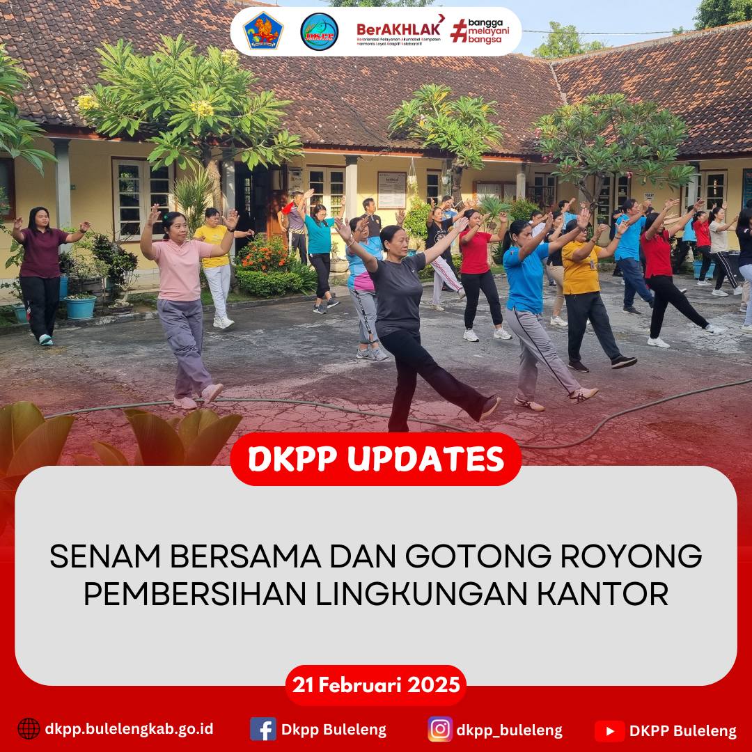 Jumat, 21 Februari 2025 - Senam Bersama dan Gotong Royong Pembersihan Lingkungan Kantor oleh jajaran Dinas Ketahanan Pangan dan Perikanan (DKPP) Kabupaten Buleleng