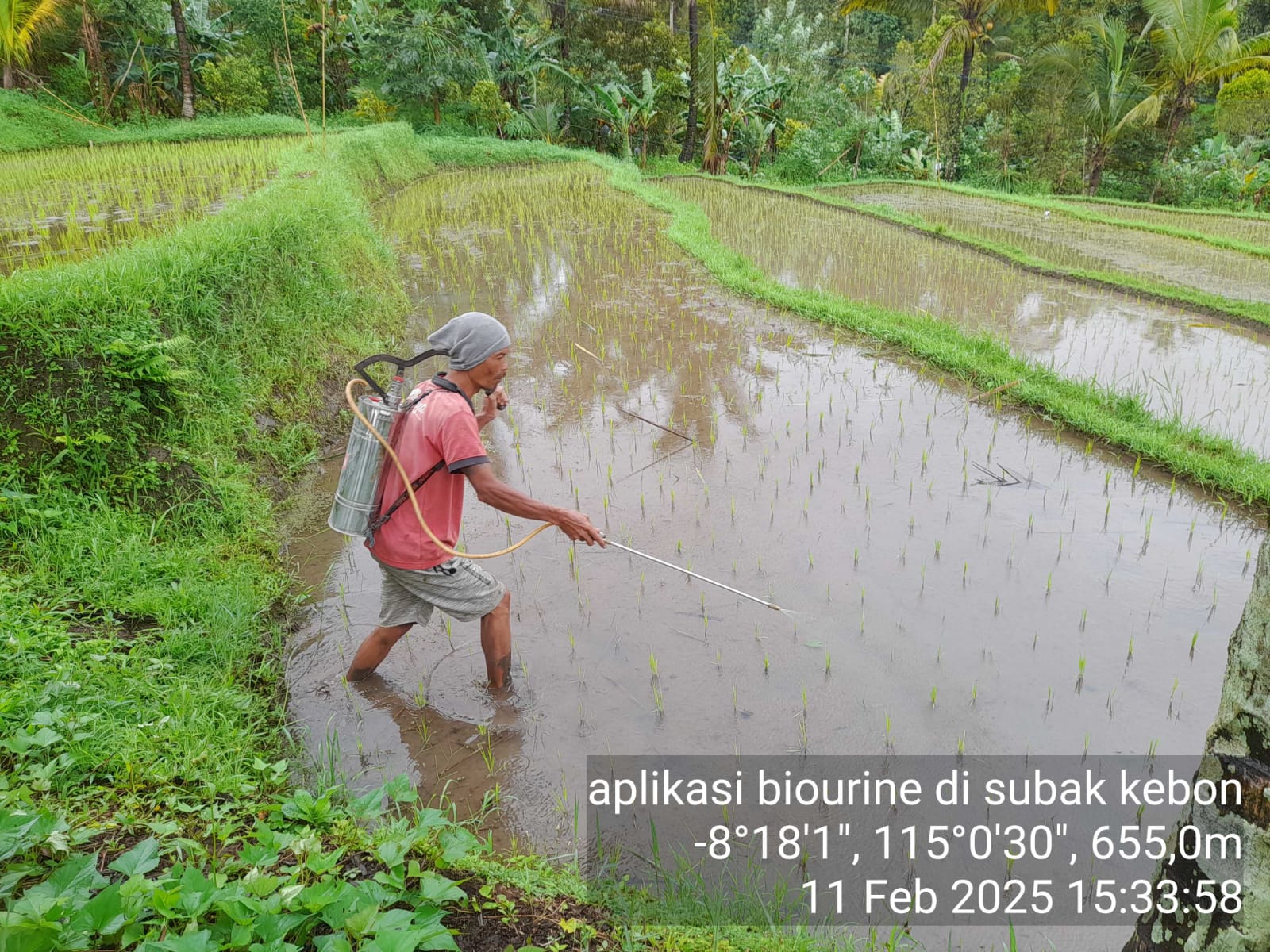 Aplikasi biourine kambing dilaksanakan pada tanaman padi milik klian subak kebon, Desa Tinggarsari, Kecamatan Busungbiu pada hari Selasa, 11 Februari 2025. Aplikasi ini dilakukan oleh petani bersama ppl wilbin. Untuk takaran yang digunakan sebanyak 250 ml/tangki. Diharapkan dengan aplikasi biourine pada tanaman padi dapat merangsang pertumbuhan tanaman menjadi lebih baik. Selain itu, juga dapat mencegah serangan tikus pada tanaman padi.