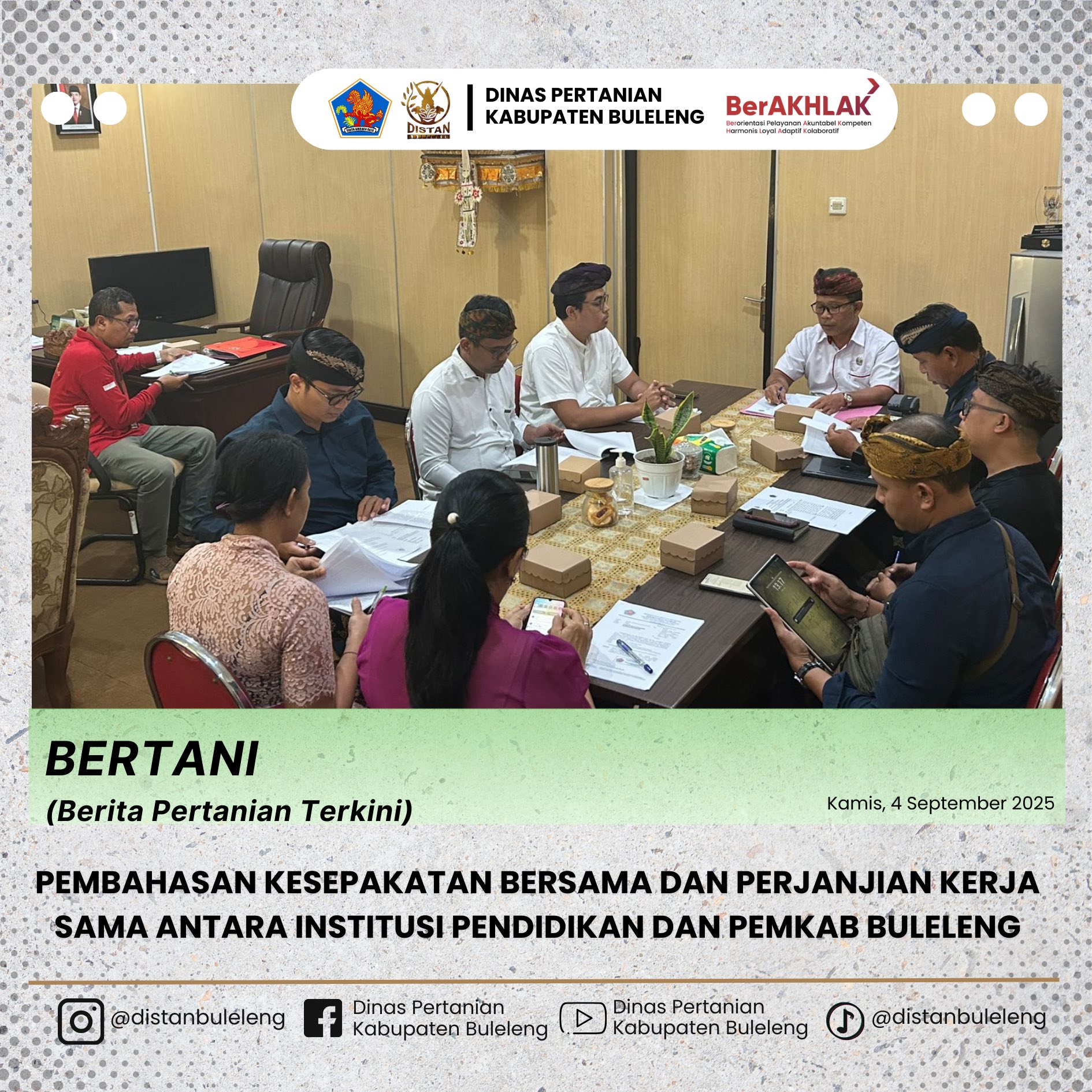 Berlangsung pembahasan Kesepakatan Bersama dan Perjanjian Kerja Sama antara institusi pendidikan dan Pemkab Buleleng, dalam hal ini dengan Dinas Pertanian Kabupaten Buleleng.