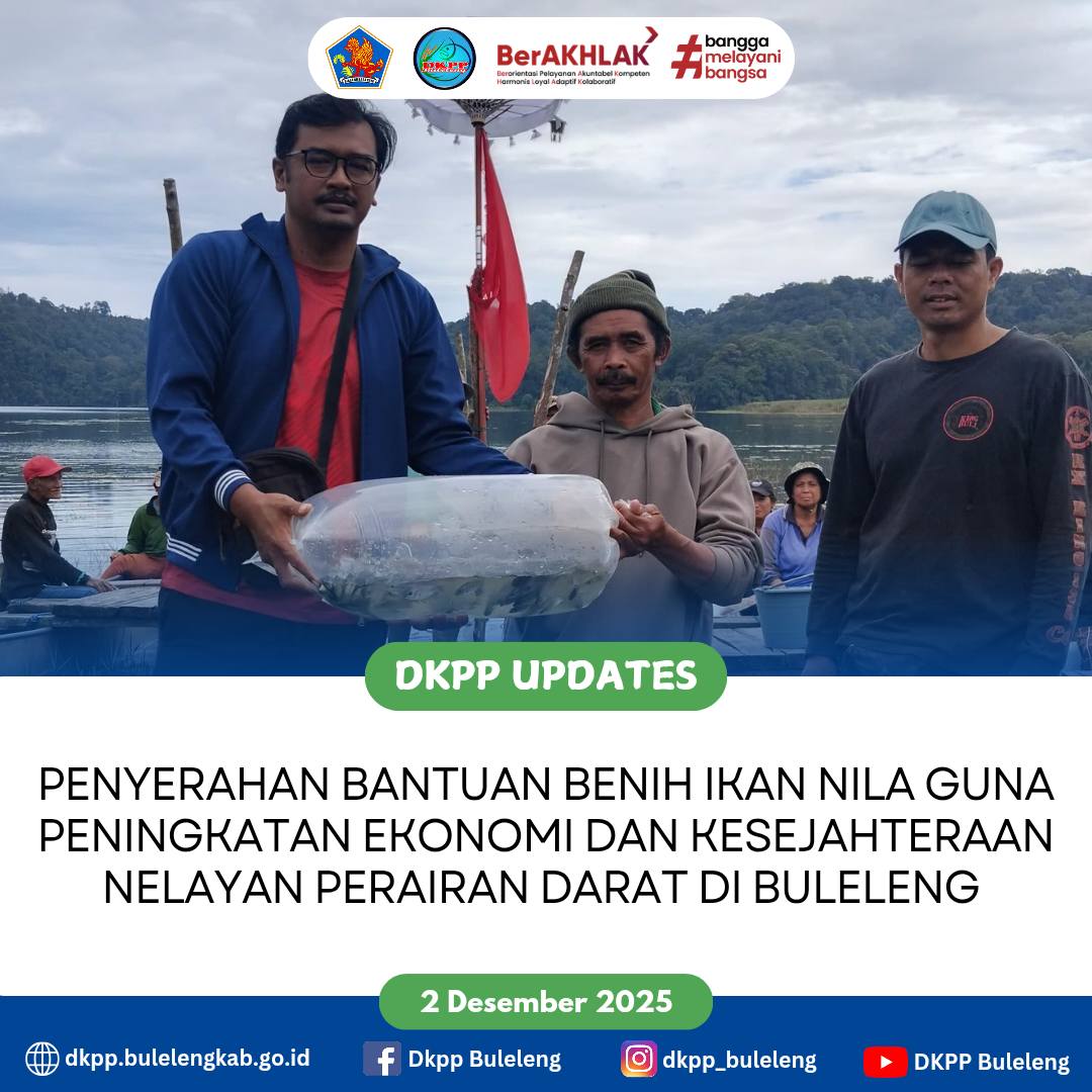 Dinas Ketahanan Pangan dan Perikanan (DKPP) Kabupaten Buleleng melalui UPTD Balai Perbenihan Ikan (BPI) melakukan penyerahan Benih Ikan Nila atas permohonan Kelompok Nelayan Astiti Amerta, Desa Munduk, Kecamatan Banjar. Benih Ikan Nila yang ditebar kali ini merupakan hasil pemijahan Induk Ikan Nila di UPTD BPI Buleleng. Selasa (2/12)