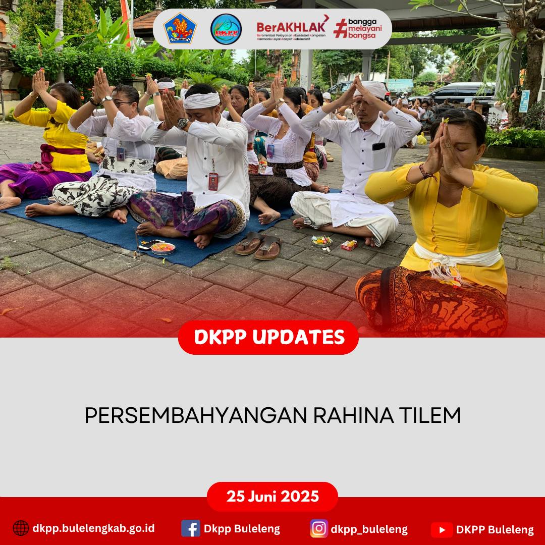 Rabu, 25 Juni 2025 - Persembahyangan bersama jajaran Dinas Ketahanan Pangan dan Perikanan (DKPP) Kabupaten Buleleng dalam rangka Rahina Tilem. Tilem merupakan hari baik untuk memuja dan memohon anugerah kepada Sang Hyang Surya.