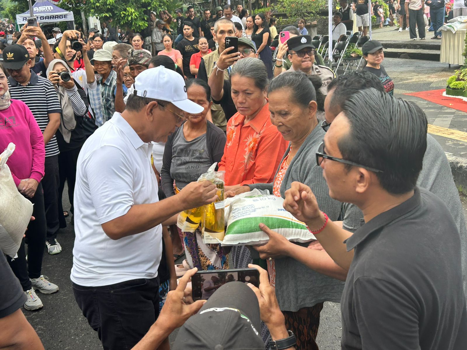 Penyerahan Bantuan Pangan diserahkan langsung secara Simbolis oleh Bupati Buleleng berupa Beras 2 Kantong masing-masing sebesar 10Kg dan Minyak 4 Liter.