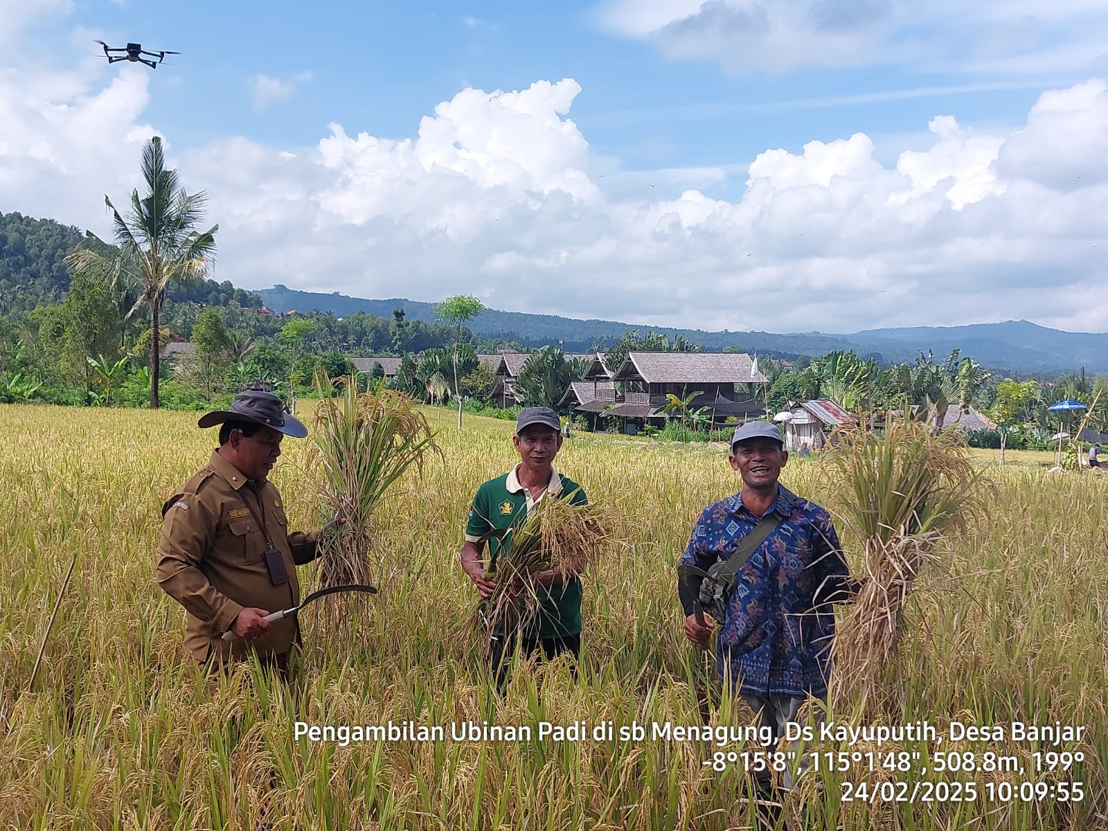 Senin, 24 Januari 2025 berlokasi di subak Menagung, Desa Kayuputih, tepatnya lahan Wayan Ariawan seluas 40 are, dilaksanakan pengambilan ubinan padi bersama Kepala Dinas Pertanian Kabupaten Buleleng dan bidang Tanaman Pangan. Ubinan adalah salah satu cara memprediksi jumlah produksi padi yang masih ada di lahan melalui penentuan sampel, pengukuran dan penimbangan. Padi yang akan dilakukan kegiatan ubinan adalah padi yang sudah siap dipanen.