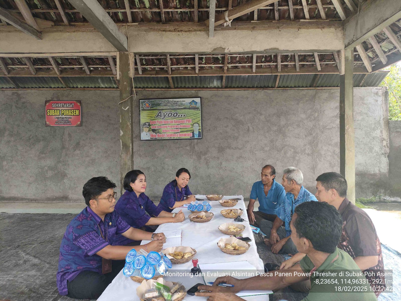 Pada Selasa, 18 Februari 2025, Pengawas Mutu Hasil Pertanian Bidang Tanaman Pangan, melakukan kegiatan monitoring dan evaluasi pemanfaatan alsintan pasca panen tanaman pangan yaitu Power Thresher di Subak Pohasem, Desa Mayong, Kecamatan Seririt. Kegiatan ini didamping oleh Kelian Subak Pohasem, Gusti Nyoman Ardika. Tujuan dari kegiatan ini adalah untuk mengetahui keberadaan dan memastikan kondisi serta pemanfaatan alsintan pasca panen khususnya power thresher di kelompok/subak tersebut berfungsi dengan baik dan optimal.