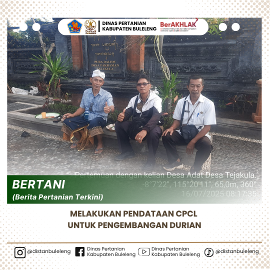 Tejakula, 16 Juli 2025 Koordinator BPP Tejakula bersama penyuluh wilbin Tejakula Ananta Swarna Putra, SP melakukan pendataan CPCL untuk pengembangan tanaman durian di Kecamatan Tejakula.