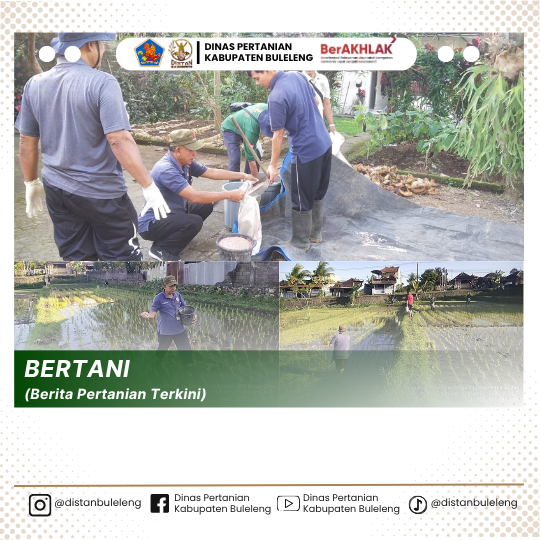 Pada hari ini, Senin, 14 Juli 2025, BPP Kecamatan Busungbiu bekerja sama melaksanakan pemupukan pertama pada usia padi 7 hari setelah tanam (HST) di lahan BPP yang dijadikan demplot percontohan budidaya padi sawah dengan menggunakan perlakuan sistem tanam. Terdiri dari 3 jenis perlakuan, yakni sistem tanam SRI, Jajar Legowo dan perlakuan konvensional petani/ Tegel. Jenis pupuk yang diberikan yakni Urea dengan dosis rekomendasi pemerintah sebanyak 275 kg/ha yang diberikan 30% di pemupukan kali ini dan jenis pupuk kedua yaitu NPK Phonska dengan rekomendasi sebanyak 250 kg/Ha yang diberikan 50% di pemupukan pertama hari ini. Selanjutnya pertumbuhan dan perkembangan tanaman akan dipantau dan dimonetoring secara rutin oleh seluruh pegawai BPP Kecamatan Busungbiu yang ditandai oleh dilaksanakannya pengukuran variabel pertumbuhan tanaman seperti tinggi tanaman dan jumlah anakan setiap minggunya melalui penentuan rumpun tetap disetiap perlakuan.