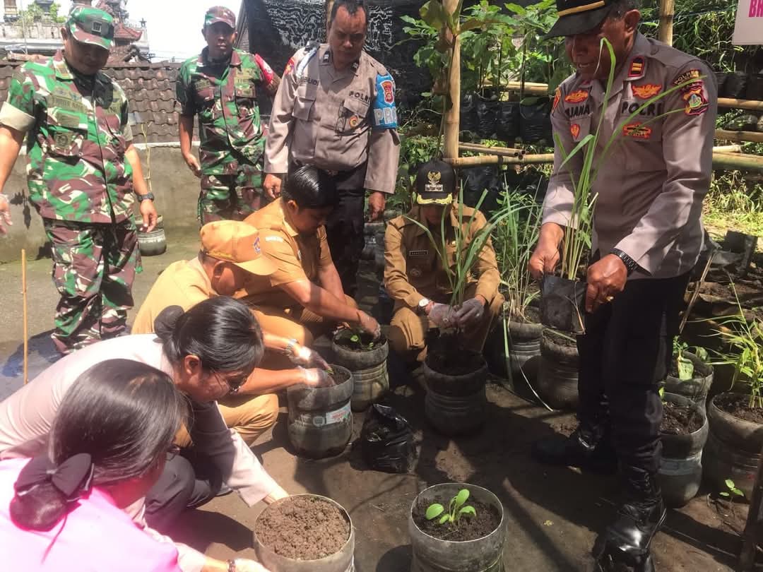 Polda Bali-Polres Buleleng, Polsek Busungbiu bersama Bhayangkari Ranting Busungbiu mengikuti kegiatan Launching Program Pekarangan Pangan Lestari (P2L) yang dilaksanakan secara live streaming melalui YouTube. Acara ini berlangsung di Pekarangan Pangan Lestari Bhayangkari Polsek Busungbiu, mulai pukul 11.40 Wita. Senin(24/02/2025)
