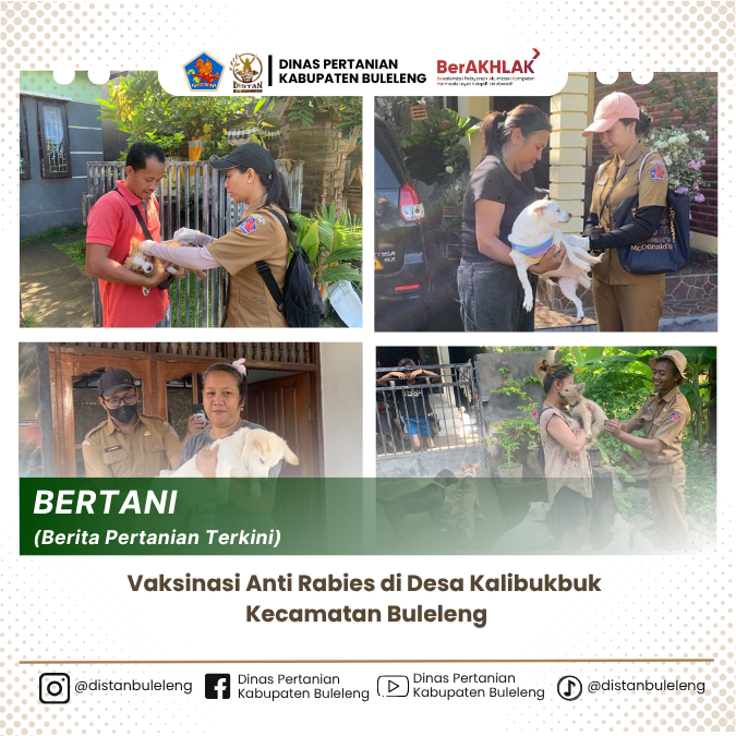 Pada hari ini 2 Juni 2025, Dinas Pertanian Kabupaten Buleleng melalui Bidang Kesehatan Hewan, menggelar kegiatan vaksinasi anti rabies di Desa Kalibukbuk, Kecamatan Buleleng, Kabupaten Buleleng,. Kegiatan ini bertujuan untuk mencegah penyebaran rabies di wilayah tersebut yang merupakan langkah penting dalam melindungi kesehatan masyarakat dan hewan peliharaan.