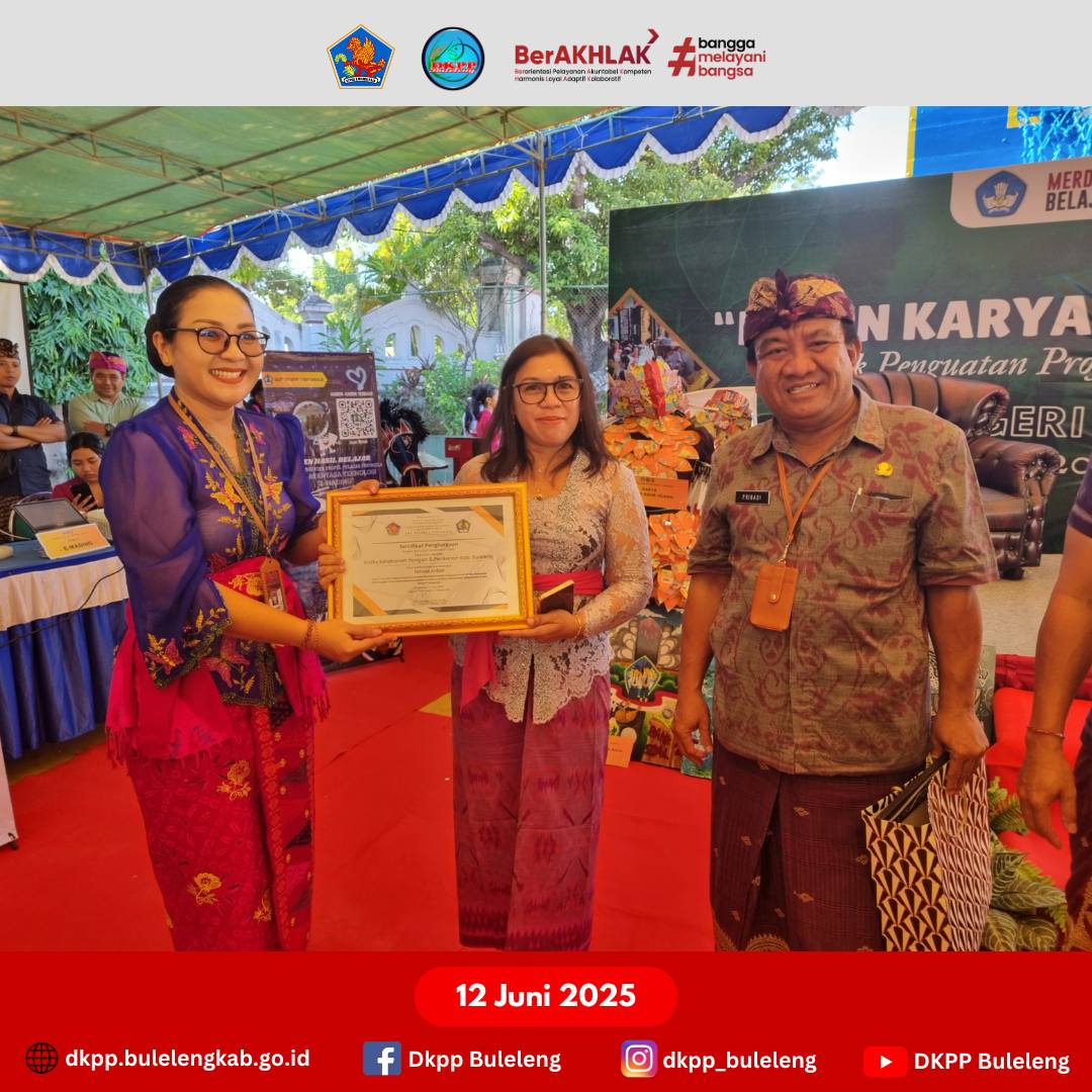 Kamis, 12 Juni 2025 - Dinas Ketahanan Pangan dan Perikanan (DKPP) Kabupaten Buleleng yang diwakili Kasubbag Umum dan Keuangan (drh. Luh Gede Ira Yuniariani) menghadiri Acara Panen Karya, Panen Makna pada implementasi program Kurikulum Merdeka - Proyek Penguatan Profil Pelajar Pancasila (P5) bertempat di SMPN 1 Singaraja. Kegiatan dibuka secara resmi oleh Plt. Kepala Dinas Pendidikan Kab. Buleleng Putu Ariadi Pribadi, S.STP., MAP., kemudian dilanjutkan kunjungan ke stand pameran karya dan produk buatan para siswa/siswi SMPN 1 Singaraja.