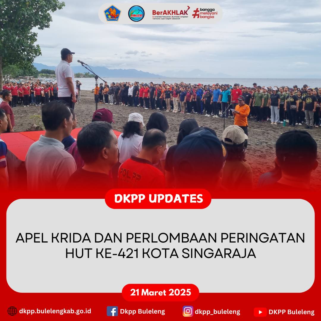 Jumat, 21 Maret 2025 - Dinas Ketahanan Pangan dan Perikanan (DKPP) Kabupaten Buleleng mengikuti Apel Krida dan Serangkaian Perlombaan Dalam Memperingati HUT ke-421 Kota Singaraja Tahun 2025.