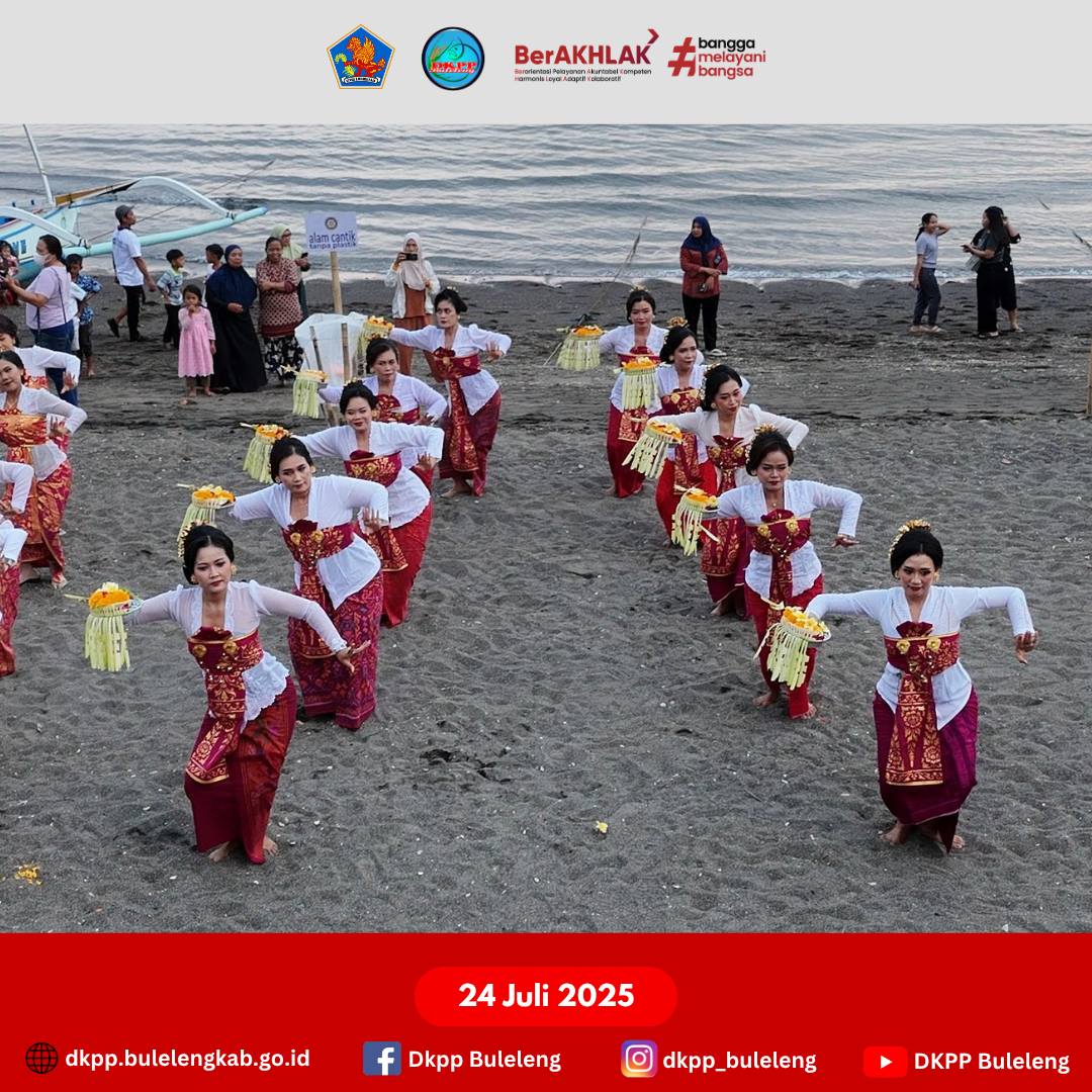 Kamis, 24 Juli 2025 - Dinas Ketahanan Pangan dan Perikanan (DKPP) Kabupaten Buleleng ikut serta dalam Pementasan Tari Panyembrahma Massal pada serangkaian Pembukaan Lovina Festival 2025 bertempat di Stage Tasik Madu - Lovina. Tim Tari Panyembrahma DKPP Buleleng mendapat nomor undi 15 dengan persiapan yang sangat baik dan bisa melakukan pementasan dengan lancar.