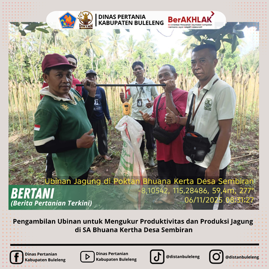 Kamis, 6 Nopember 2025 Berlokasi di Subak Abian Buana Kertha Desa Sembiran Koordinator P2K Tejakula, PPL Desa Sembiran, Petugas Data Kecamatan Tejakula, PPL Sekecamatan Tejakula dan Anggota SA Bhuana Kertha melakukan pengambilan ubinan untuk mengetahui produktivitas dan produksi yang ada SA Bhuana Kertha Desa Sembiran yang berlokasi di Lahan Bapak Nyoman Sudiarsa seluas 10 Are