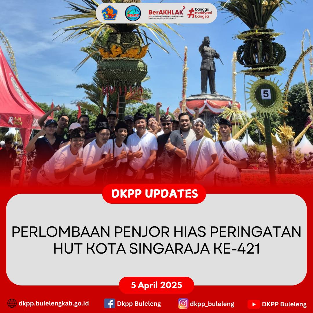 Dinas Ketahanan Pangan dan Perikanan (DKPP) Kabupaten Buleleng mengikuti Lomba Penjor Hias dalam serangkaian HUT Kota Singaraja ke-421 Tahun 2025 yang mengangkat tema “Paripurna Jayeng Wikrama”. Perlombaan kali ini DKPP Buleleng berhasil meraih Juara Harapan I.