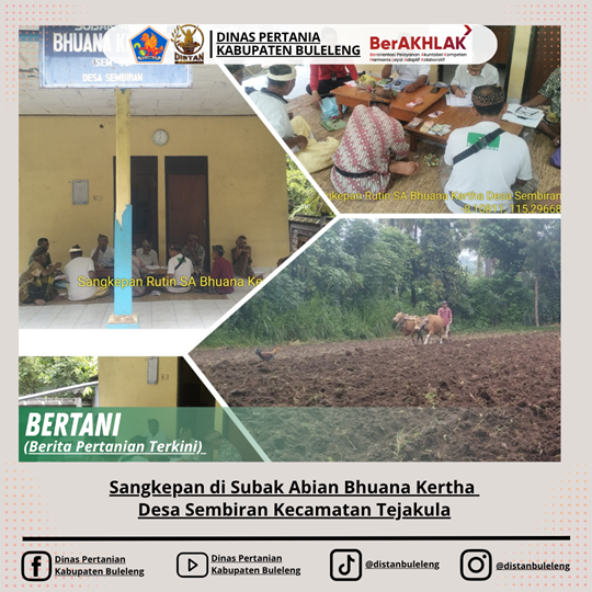Pada hari Selasa, 11 November 2025 bertempat di Balai Subak Abian Bhuana Kertha Desa Sembiran Kecamatan Tejakula dilaksanakan Kegiatan Sangkepan yang di Hadiri oleh PPL Desa Sembiran, Petugas Data Kecamatan Tejakula dan pengurus serta Angota Krama Subak. Adapun kegiatan sangkepan ini dilaksanakan setiap tanggal 11 setiap bulannya.